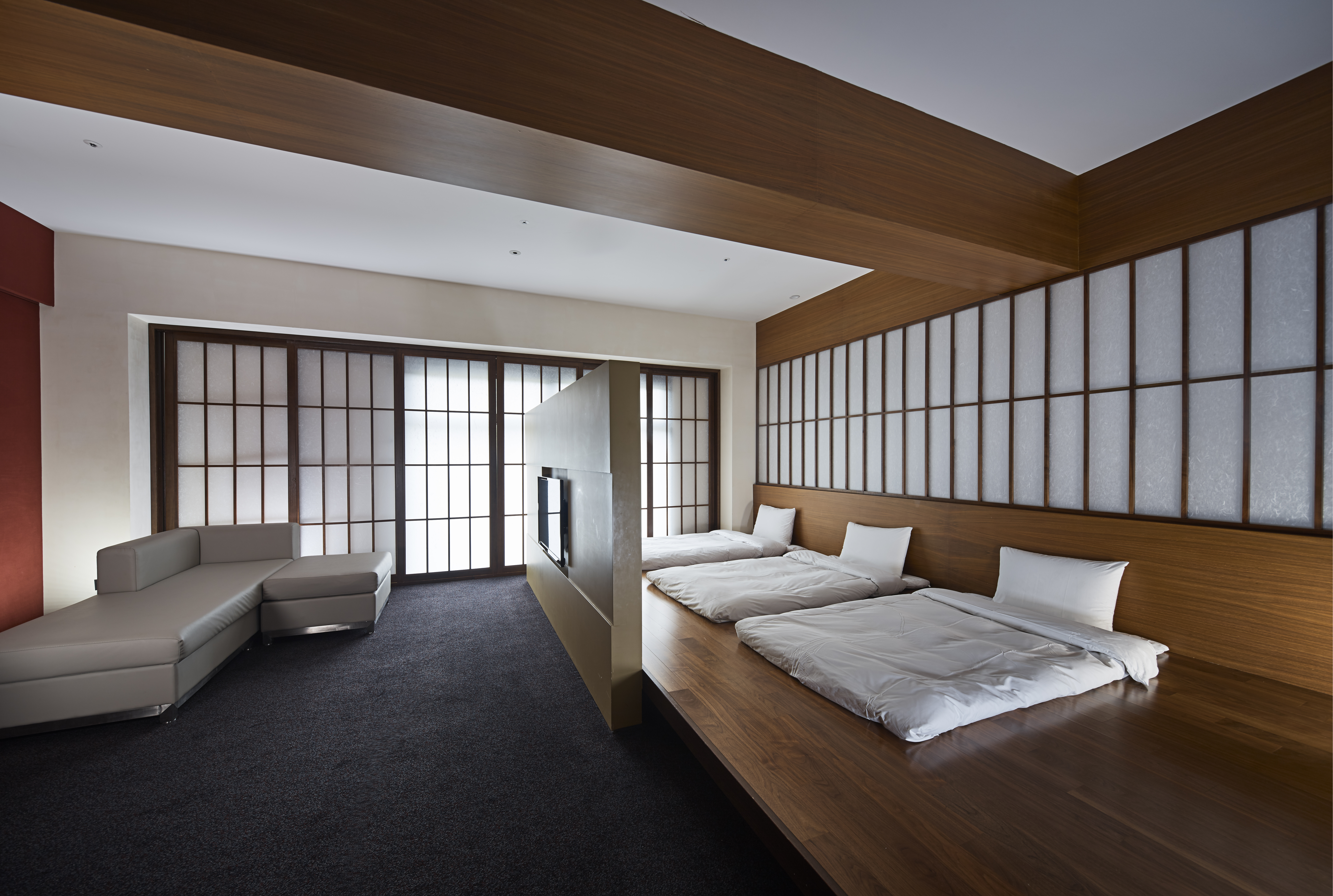 매트리스 침대가 아닌 평상형 바닥 공간을 선호하시는 분들께 더욱 편안한 잠자리가 되도록 고급 바닥재를 사용한 스위트 객실도 구비하였습니다. 침대가 없는 것만으로도 객실이 더욱 특별해지는 전통적인 디자인 컨셉트의 객실에서의 하루의 피로를 풀어보세요.
