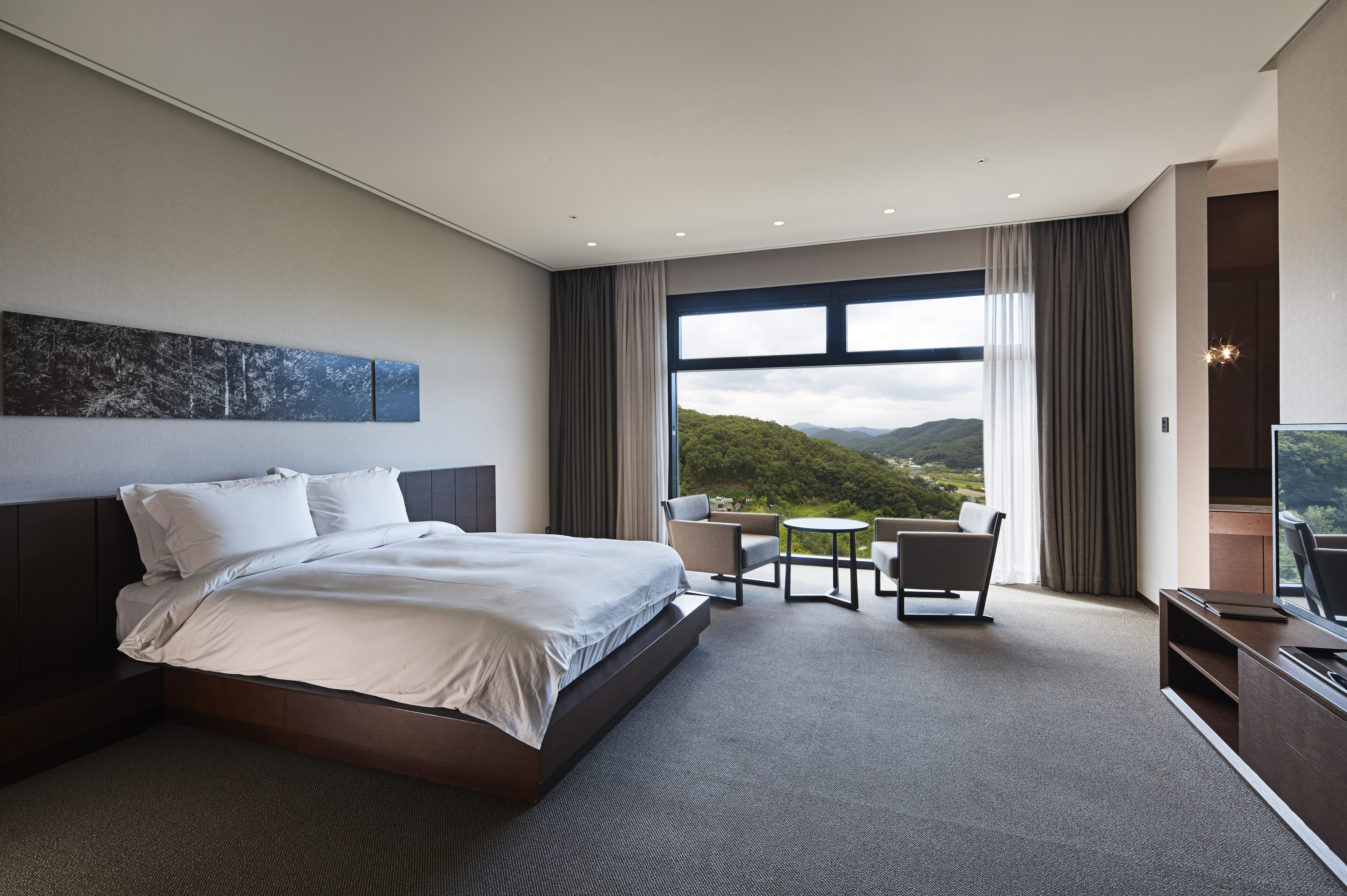 침실과 거실로 구분된 스튜디오 타입의 스위트룸은 여유있는 공간 속에서 한 폭의 그림 같은 자연을 한 눈에 담을 수 있는 객실입니다.