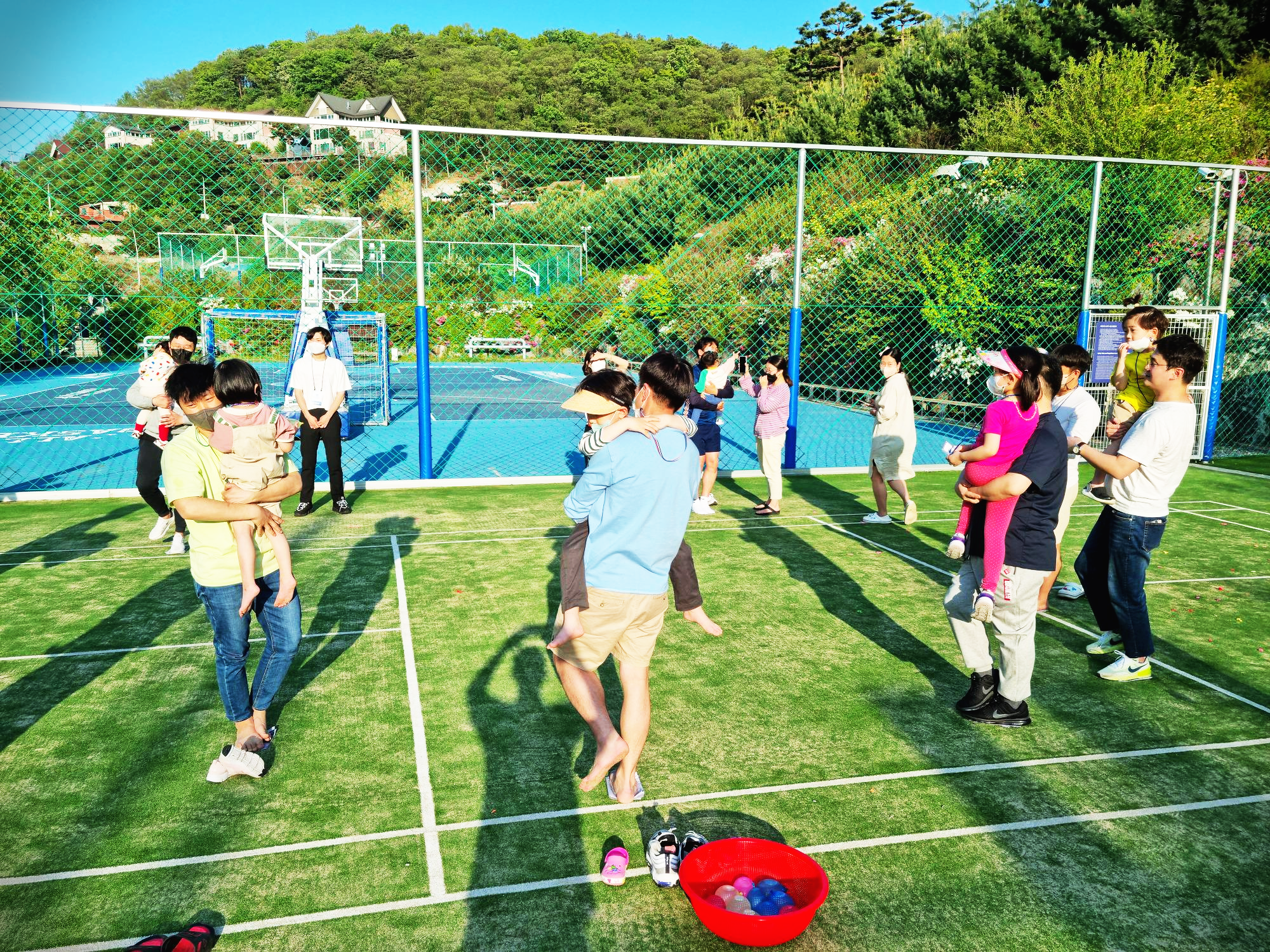 물풍선 던지기는 아이가 10개의 물풍선을 부모님 머리 위에 있는 바구니로 던져 더 많이 받는 팀이 승리하는 게임입니다. 풍선이 터지지 않게 안전하게 바구니 안으로 던지는 것이 중요한데요. 토너먼트로 진행된 이 게임은 아이와 부모님이 함께 호흡을 맞추며 하나씩 바구니에 넣어 메달을 획득하고 참여하신 모든 팀이 소정의 경품을 받아가셨습니다.