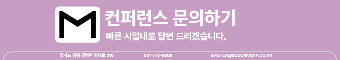 | ■ 블룸비스타 호텔 앤 컨퍼런스 🏢 경기도 양평군 강하면 강남로 316 ☎ 031-770-8888 📧 master@bloomvista.co.kr 📆 예약하러가기 |